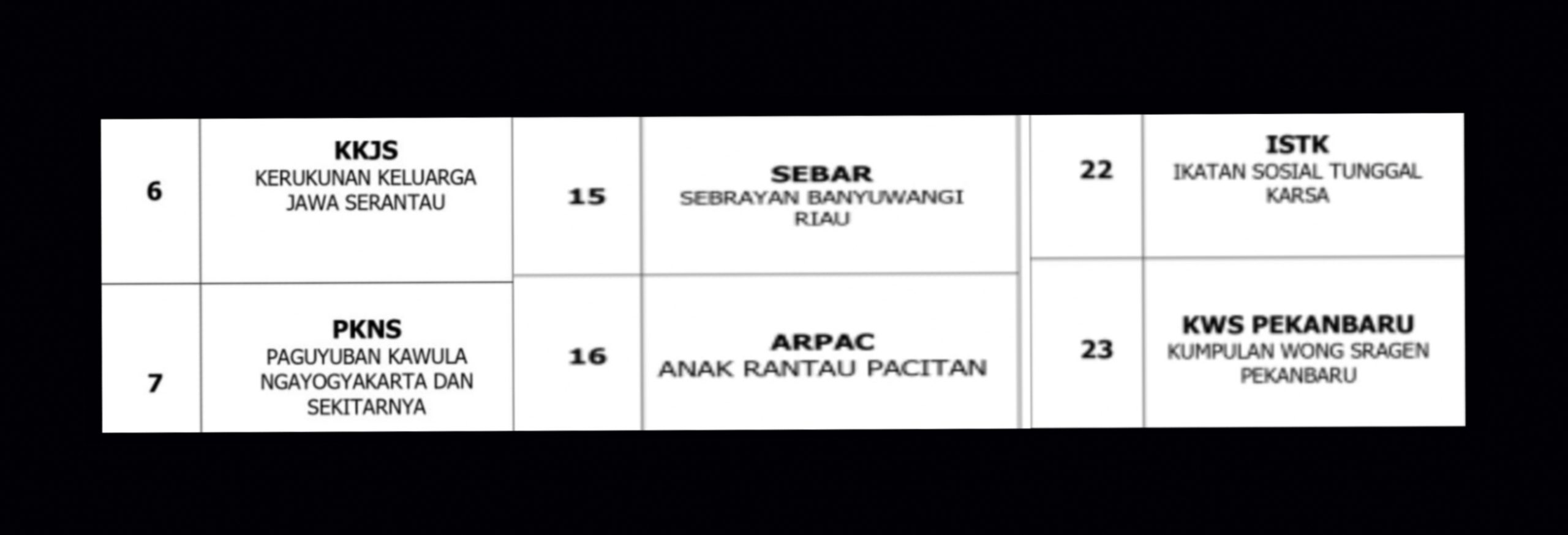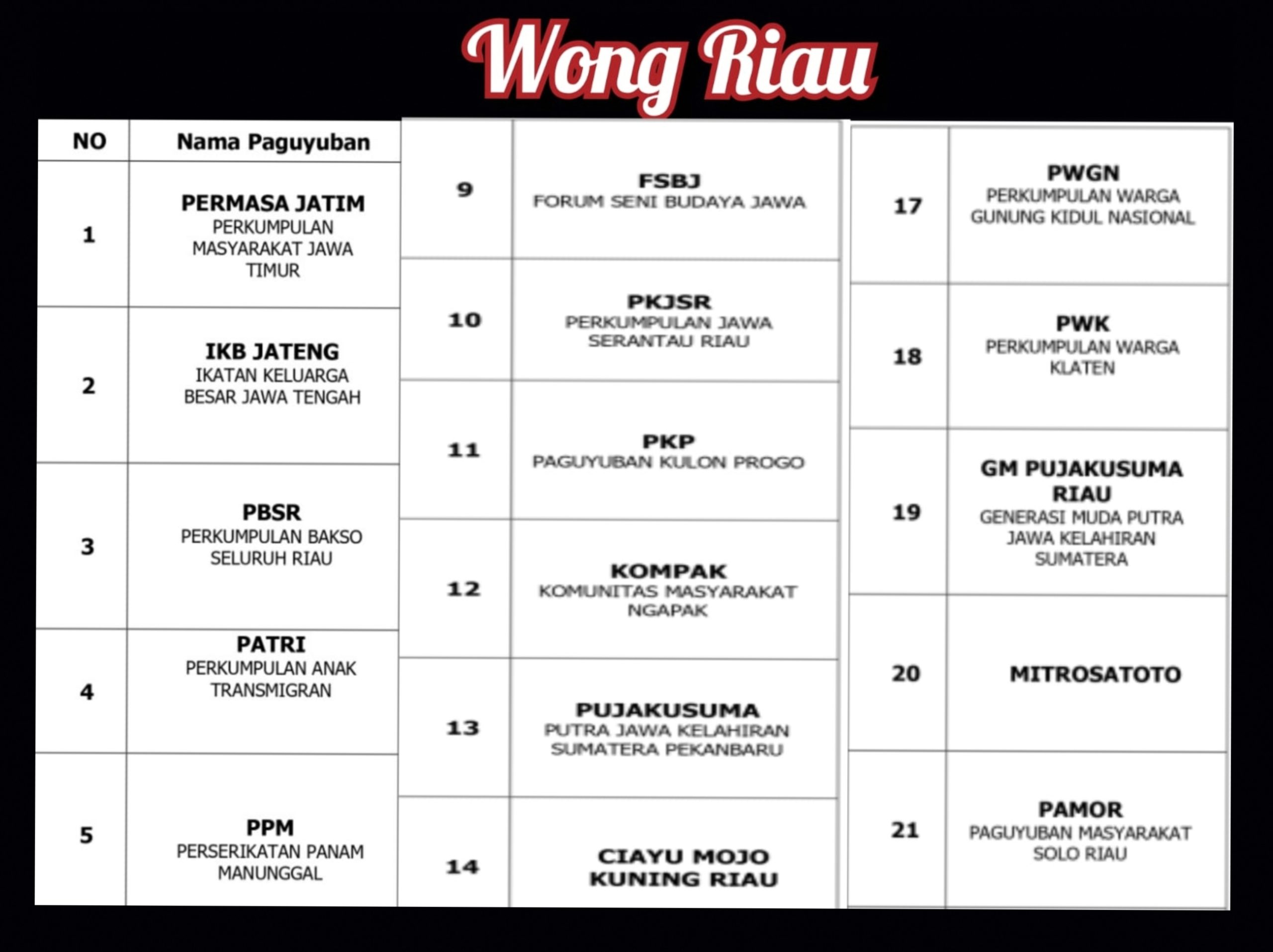 Untuk diketahui, jumlah kehadiran Wong Riau lebih kurang berjumlah 39 yang terdiri dari berbagai peguyuban maupun organisasi Jawa.