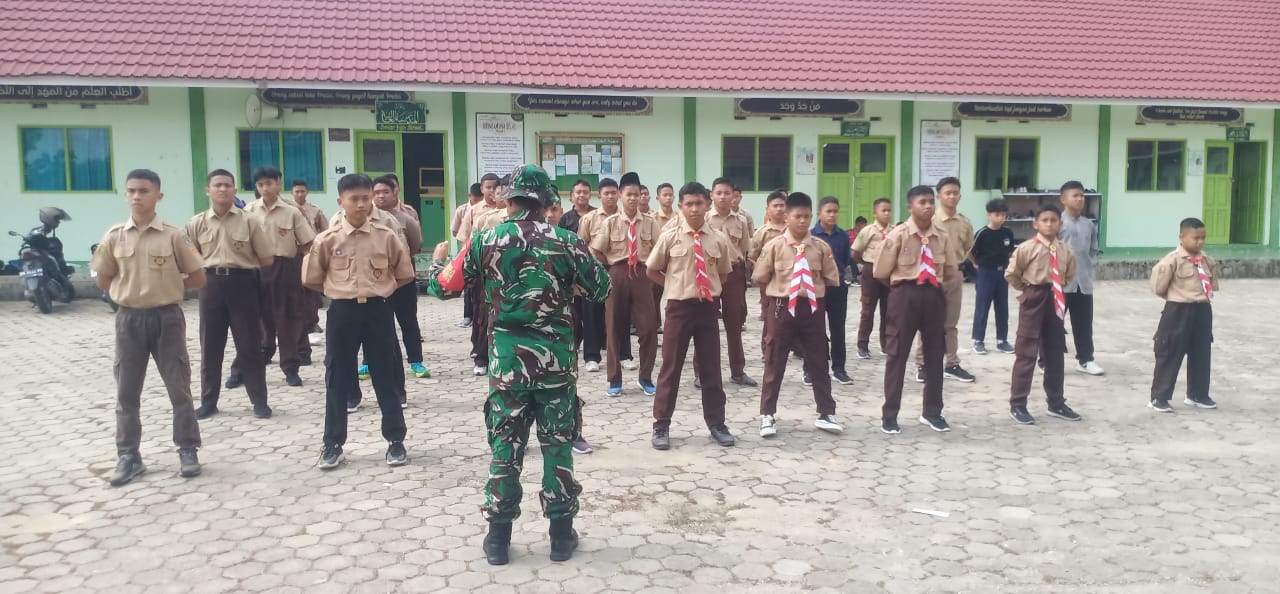 PEKANBARU,Saturealita.com-Pelda Afrianto berserta dua orang personil Koramil 07 Tenayan Raya, Serka Herman dan Serka Susanto melaksanakan kegiatan pemberian materi Peraturan Baris Berbaris (PBB).