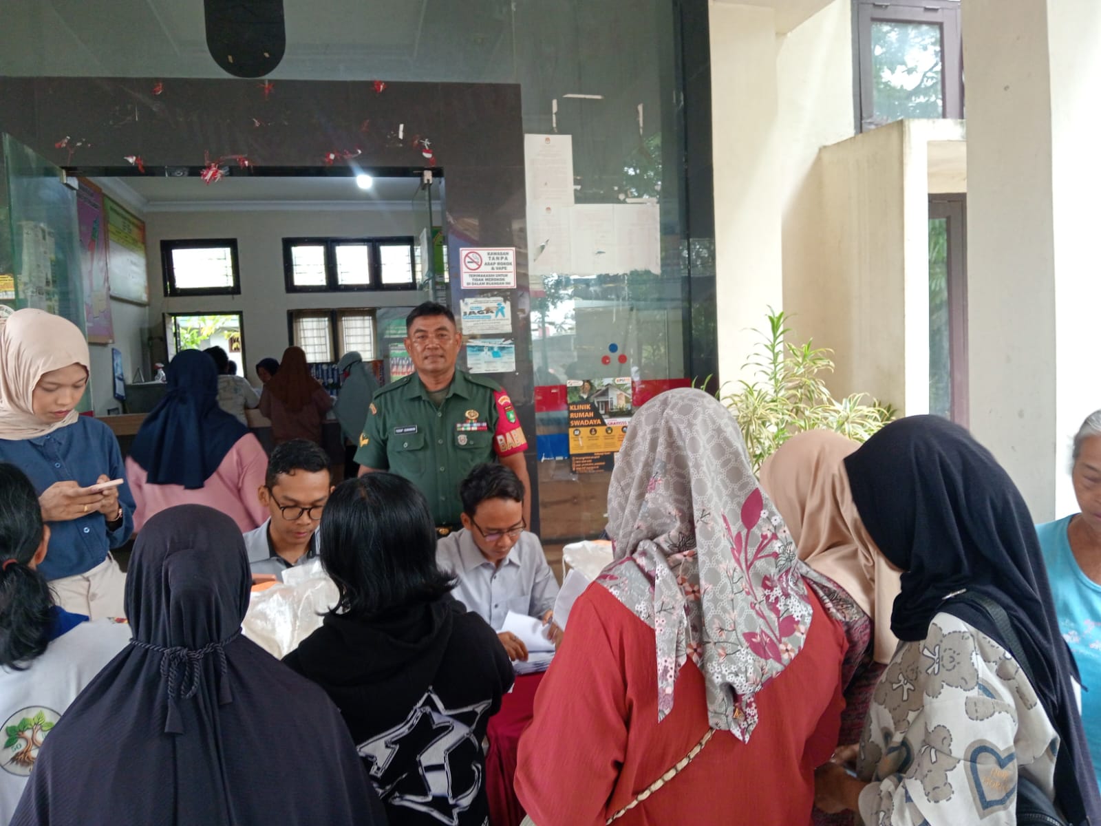 Hadir dalam giat pendistribusian pangan, Babinsa, Kepala seksi Pemerintahan (Kasi-Pem) Gunawan Kasi Kesejahteraan Iffon Rahmadani