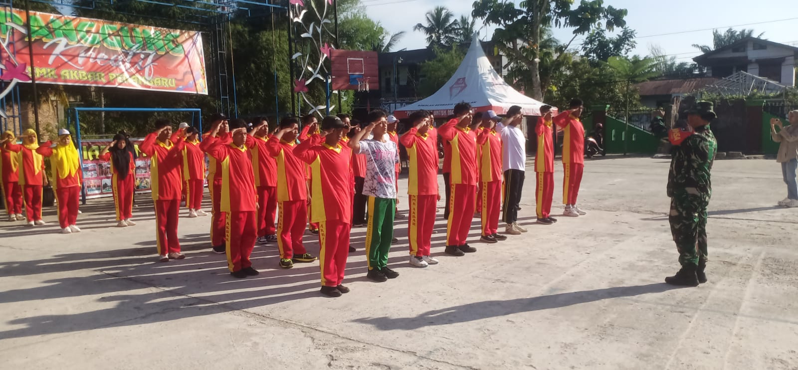 Hal ini, Serma Herman dan Sertu Said Hermanto Koramil 07 Tenyan Raya Kodim 0301 Pekanbaru melaksanakan pemberian materi PBB kepada Siswa maupun Siswi Yayasan Sekolah Menengah Atas (SMK) Akbar di Jalan Marpati RT 02 RW 05 Kelurahan Tangkerang Timur  Kecamatan Tenayan Raya kota Pekanbaru, Provinsi Riau, Sabtu, (29/11/25) kemarin.