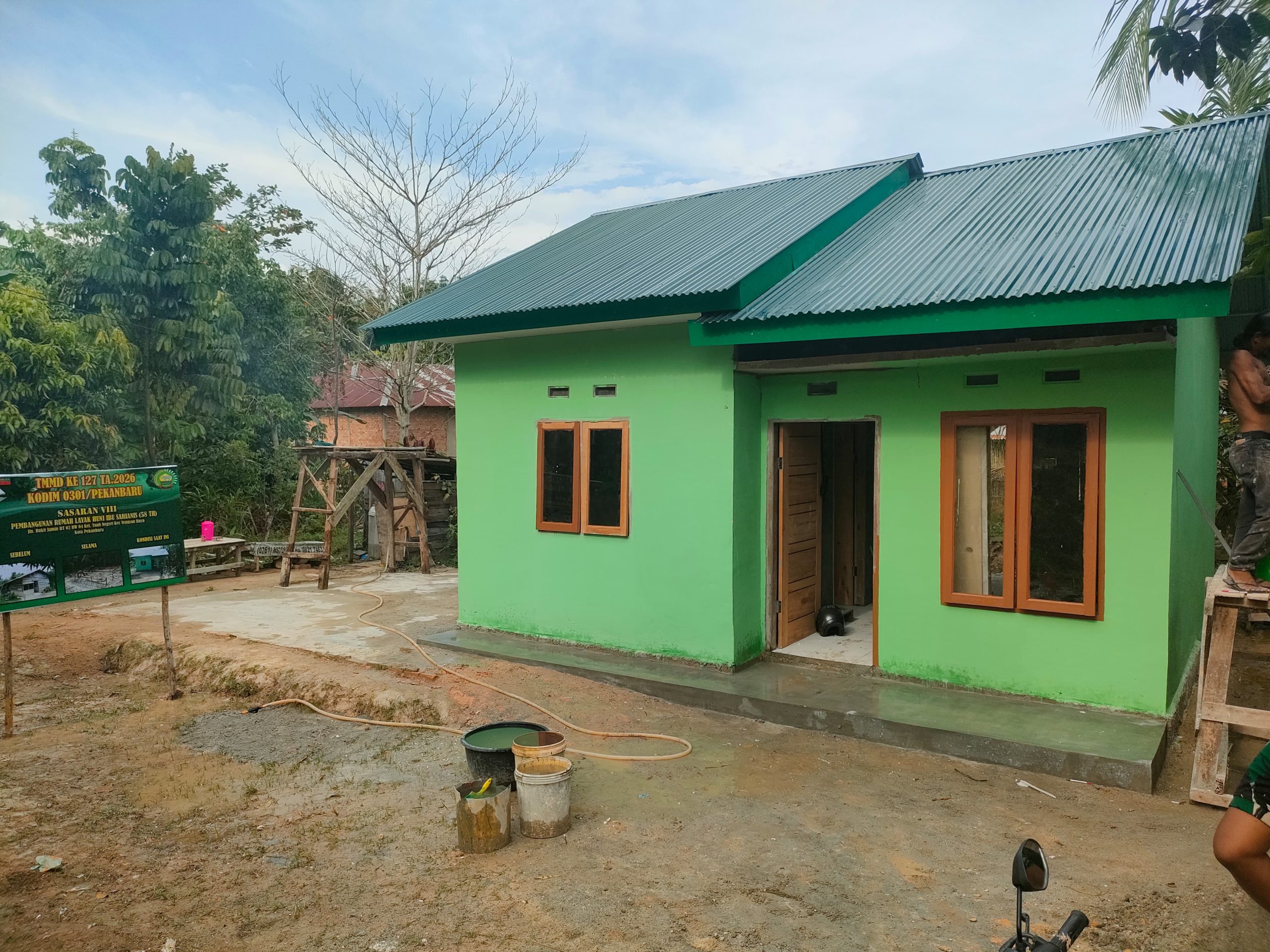 PEKANBARU,saturealita com-Satgas Tentara Nasional Indonesia (TNI) Manunggal Membangun Desa (TMMD) ke-127 Kodim 0301 Pekanbaru terus memaksimalkan pengerjaan terkait dengan pembangunan Rumah Tidak Layak Huni (RTLH) milik Ibu Sarianis (58) yang berada di Jalan Bukit Jamin RT 002 RW 004, Kelurahan Tuah Negeri, Kecamatan Tenayan Raya, Kota Pekanbaru. Jum’at, 06 Maret 2026.
