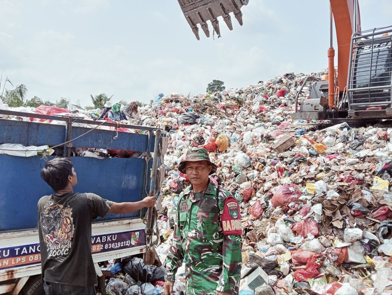 PEKANBARU,saturealita.com-Babinsa Koramil 07 Tenayan Raya, Kodim 0301 Pekanbaru, Pelda Umar Yahya giat pengamanan Transdepo Dinas Lingkungan Hidup Kebersihan (DLHK) kota Pekanbaru.